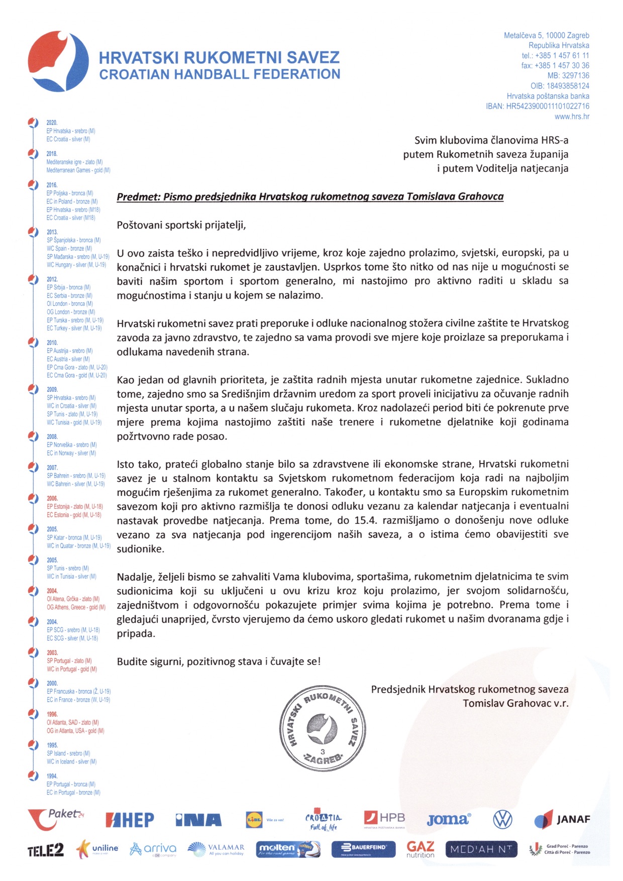 PISMO PREDSJEDNIKA HRS-a