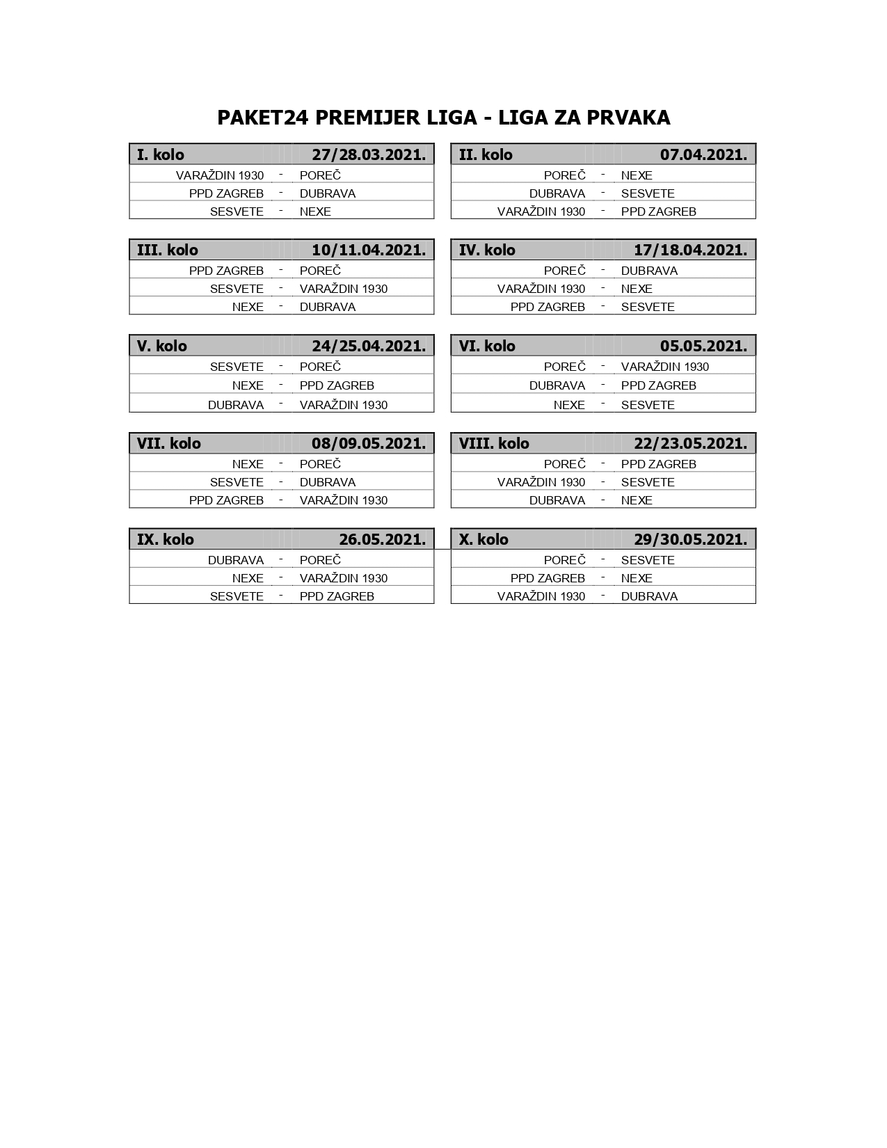 Paket 24 Premijer liga : LIGA ZA PRVAKA-RASPORED UTAKMICA