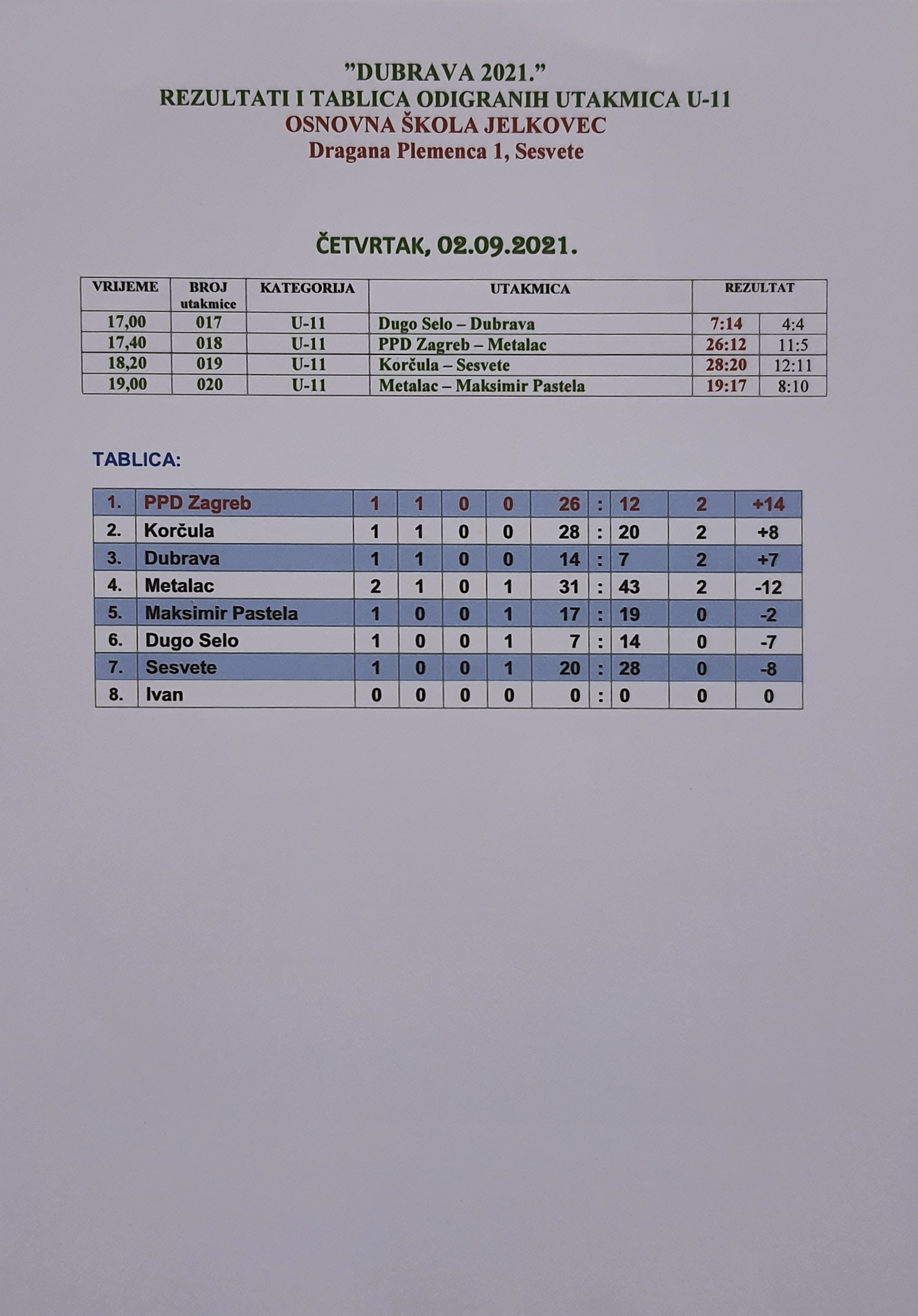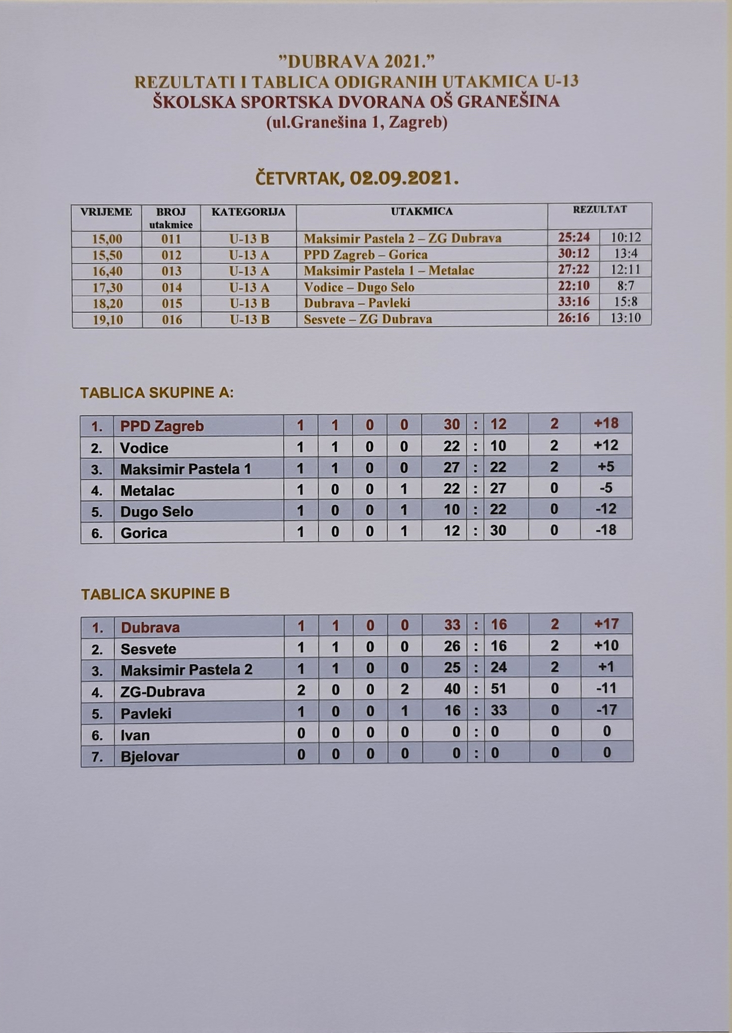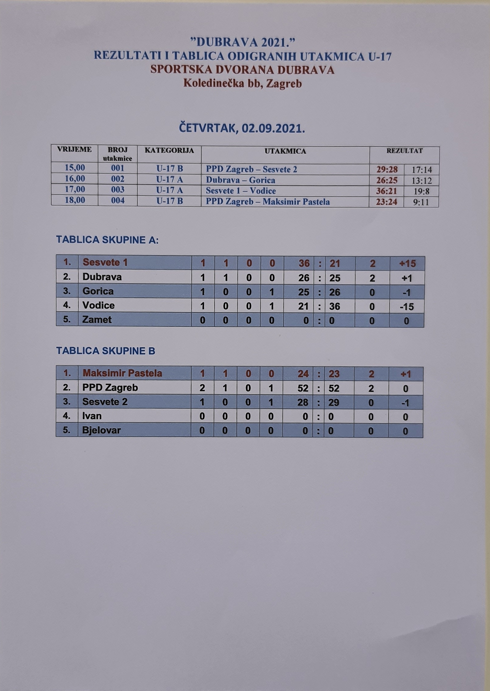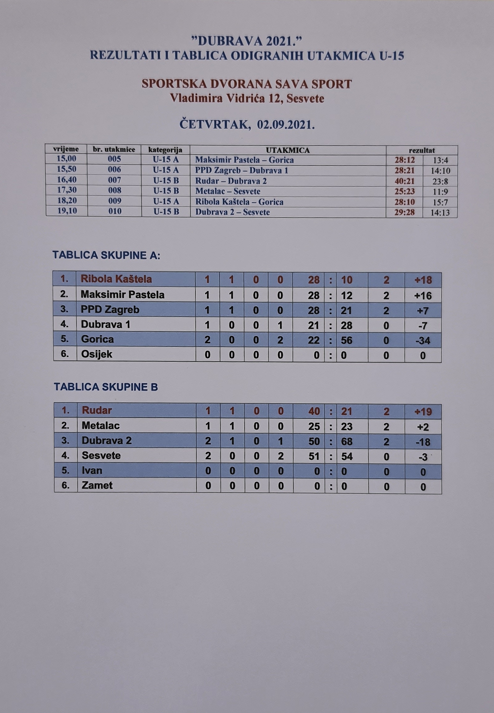 TURNIR “DUBRAVA 2021” – REZULTATI 1. DAN 02.09.202103.09.2021 admin Rezultati 1. dana rukometnog turnira “DUBRAVA 2021”